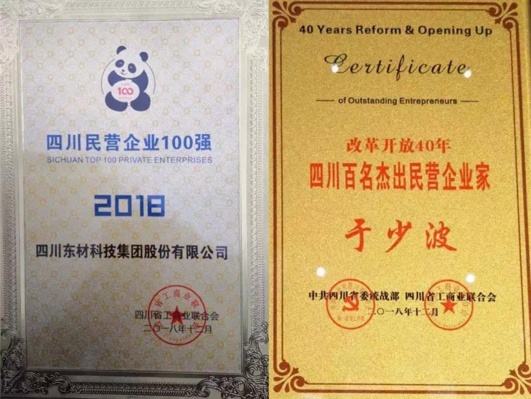 熱烈祝賀東材科技黨委書記、董事長于少波榮獲“改革開放40年四川百名杰出民營企業(yè)家”光榮稱號