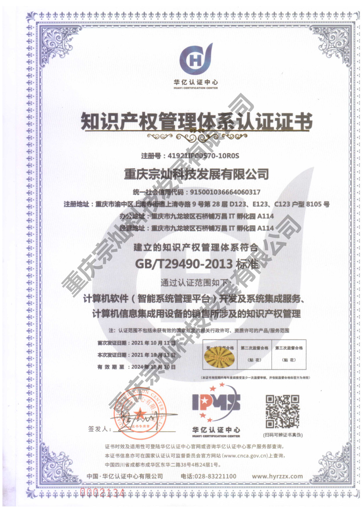 知識產權管理體系認證證書