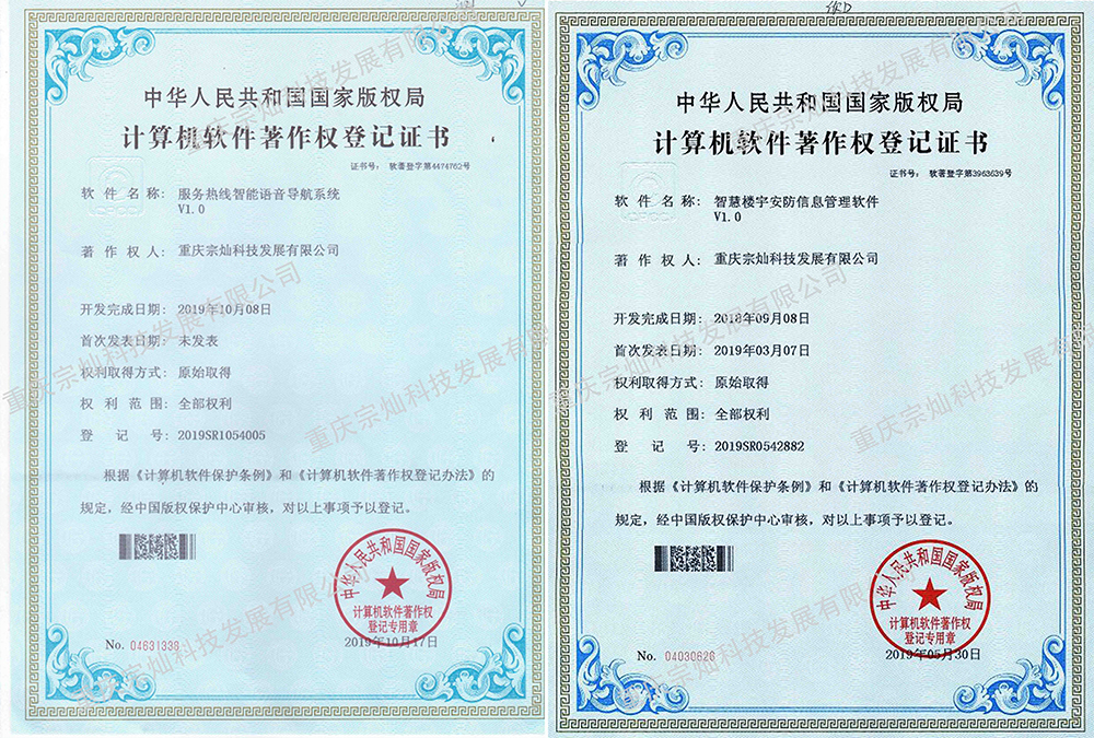 計算機軟件著作權登記證書