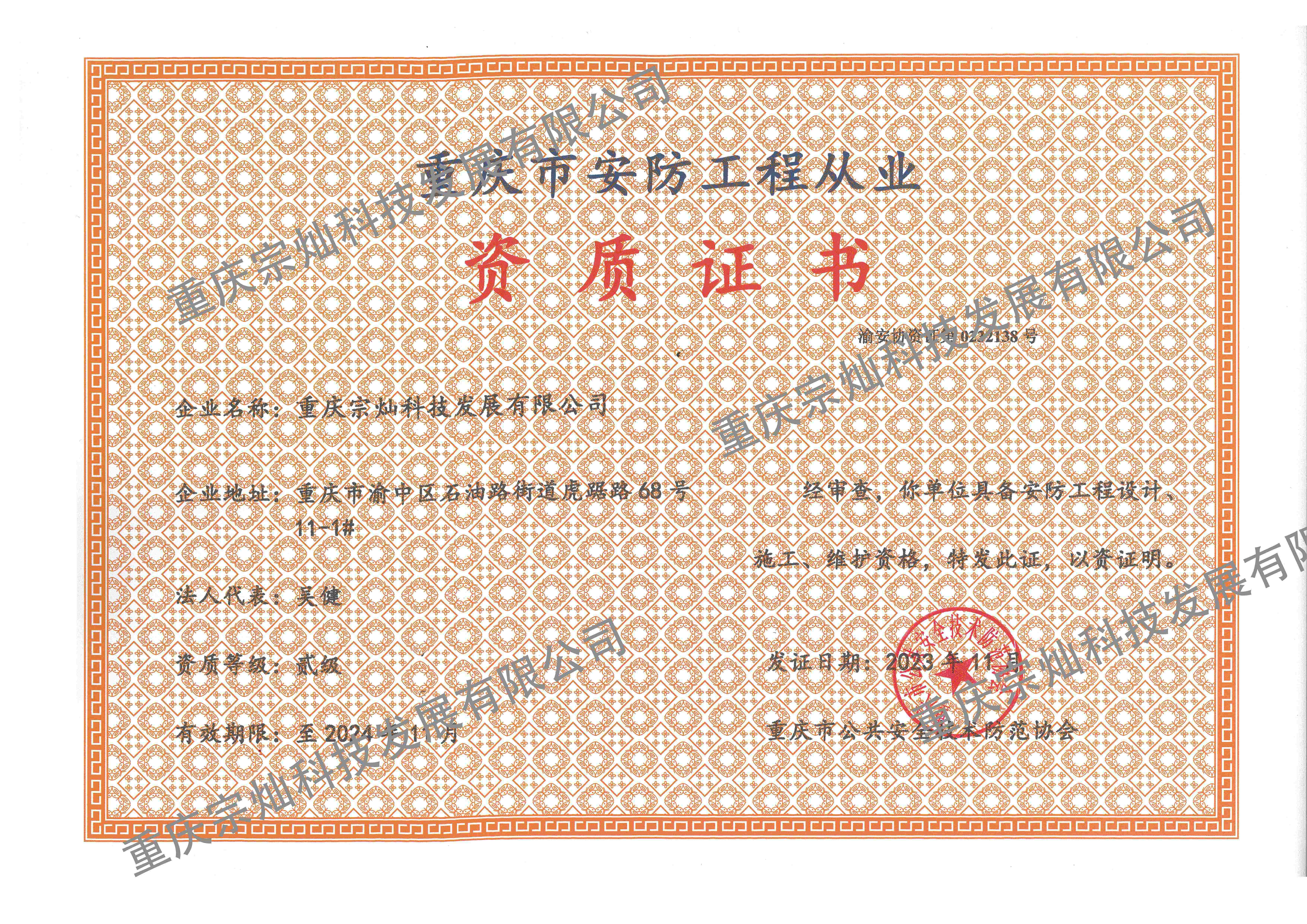 重慶市公共安全技術(shù)防范協(xié)會會員證書
